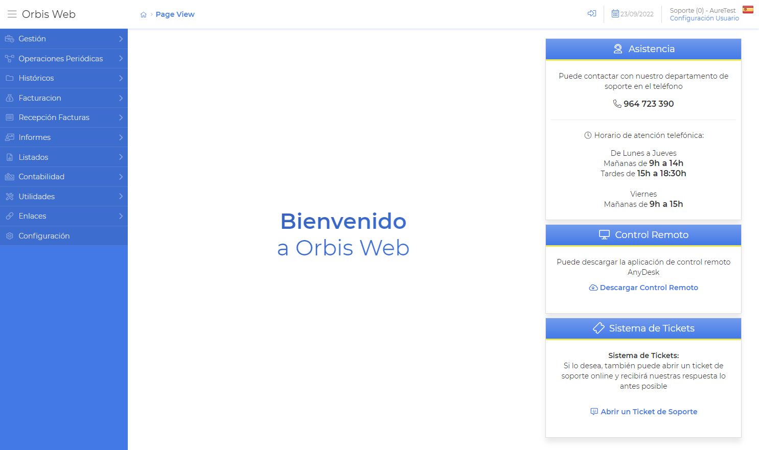 Orbis WEB está disponible las 24h e incluye un seguimiento continuo del mantenimiento del servidor así como de las versiones del programa y la gestión de las copias de seguridad.